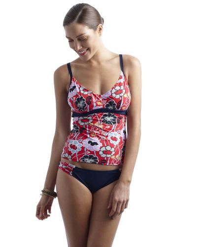 Gładkie figi w bardzo modnym w tym sezonie granatowym kolorze, subtelnie ozdobione florystycznymi wstawkami po bokach, co jest charakterystyczne dla kolekcji z linii Loren Panache Swimwear. Idealny produkt dla pań ceniących stylowy, elegancki wygląd. Niezbędnik każdej plażowej stylizacji.