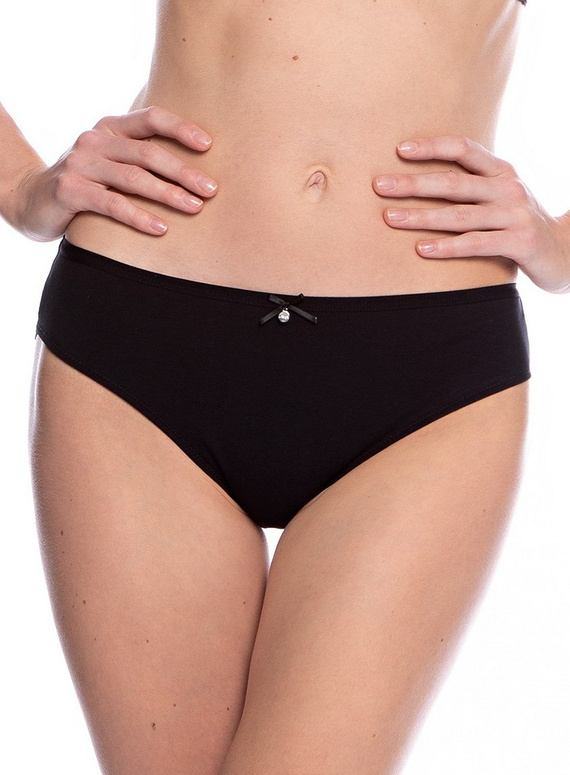 Bawełniane figi damskie o klasycznym kroju bikini. Tył obszyty ażurową koronką. Jedna sztuka wzorzysta, druga jednolita.